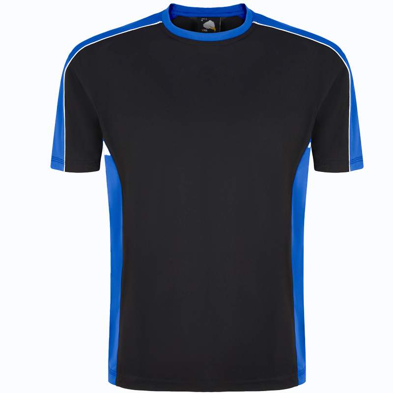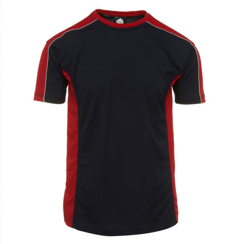 High quality, inherent wicking polyester t-shirt with self-fabric collar, well padded taped neckline for comfort. Sporty multi-colour design with hi-vis piping along the shoulders, matching contrast side panels with triple stitched on all main seams for ultimate strength.