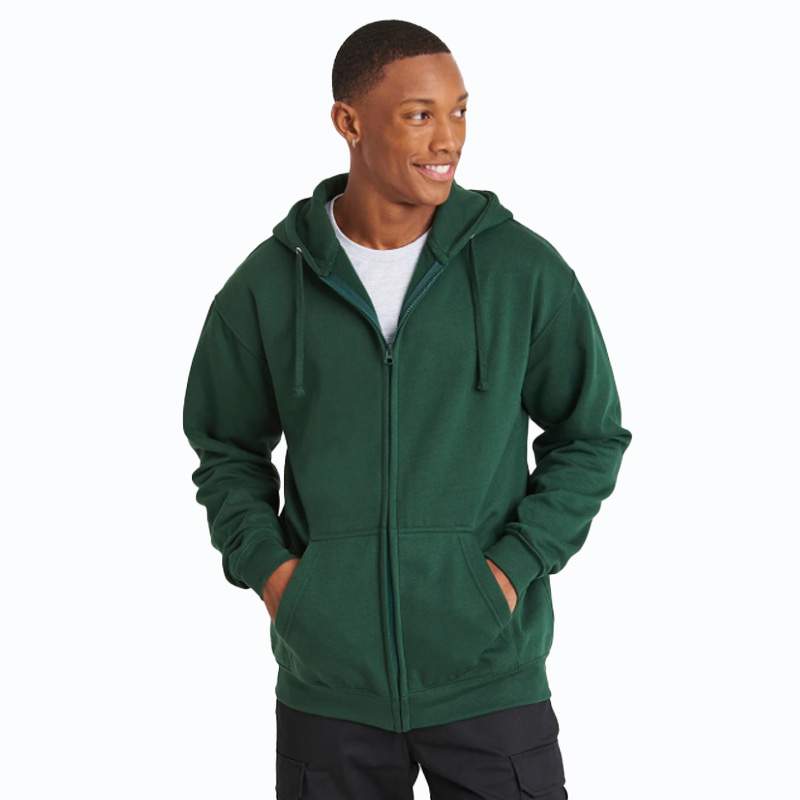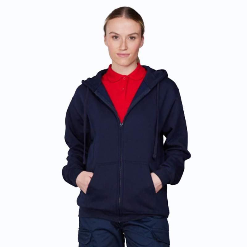 YKK zip and pull. Fully lined hood. Self-coloured adjustable drawcords. Brushed inner fleece. Ribbed cuff and hem. Inner fabric brushed fleece. Modern yet comfortable fit. Pouch pockets. Certified WRAP and SEDEX.